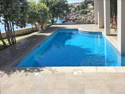 The paths around the house are made of Morinj stone, and the plateau in front of the kitchen is made of travertine, the areas around the pool and the outdoor shower are made of the same material. Water tanks are also made of the same surface, they served excellently as a space for sunbathing.