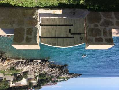 Existing plants have been retained, mostly maggots and oaks. The property is surrounded by a stone wall with several exits with combined gates to the sea. The complete summer kitchen with barbecue and wood stove is placed on the edge of the plot. Covered and open at the front. In front of it are several tables with benches and chairs for serving specialties from the kitchen.
